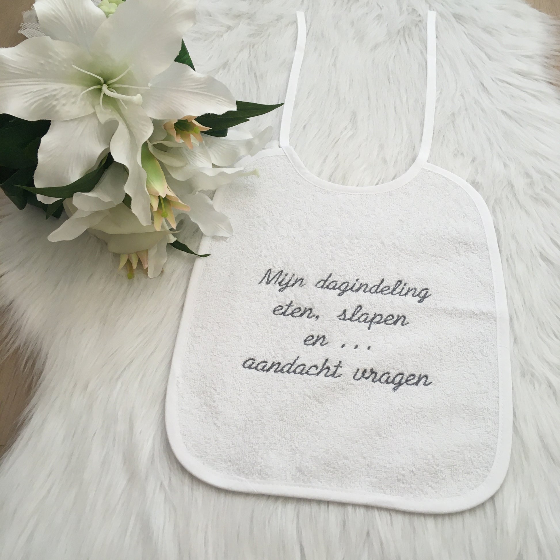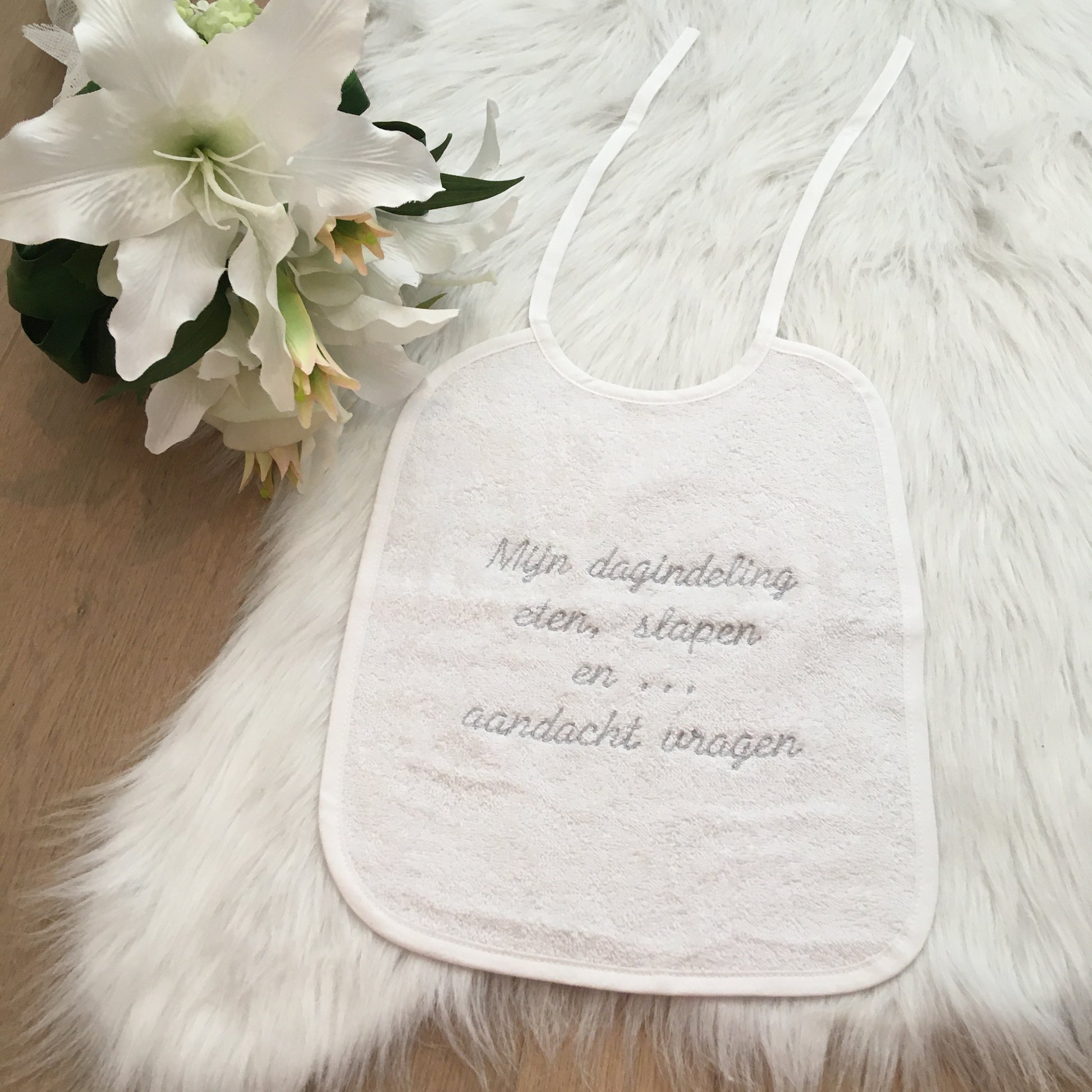 Deze comfortabele slab met leuke tekst zorgt ervoor dat jouw kleine spruit het schoon houd tijdens het eten