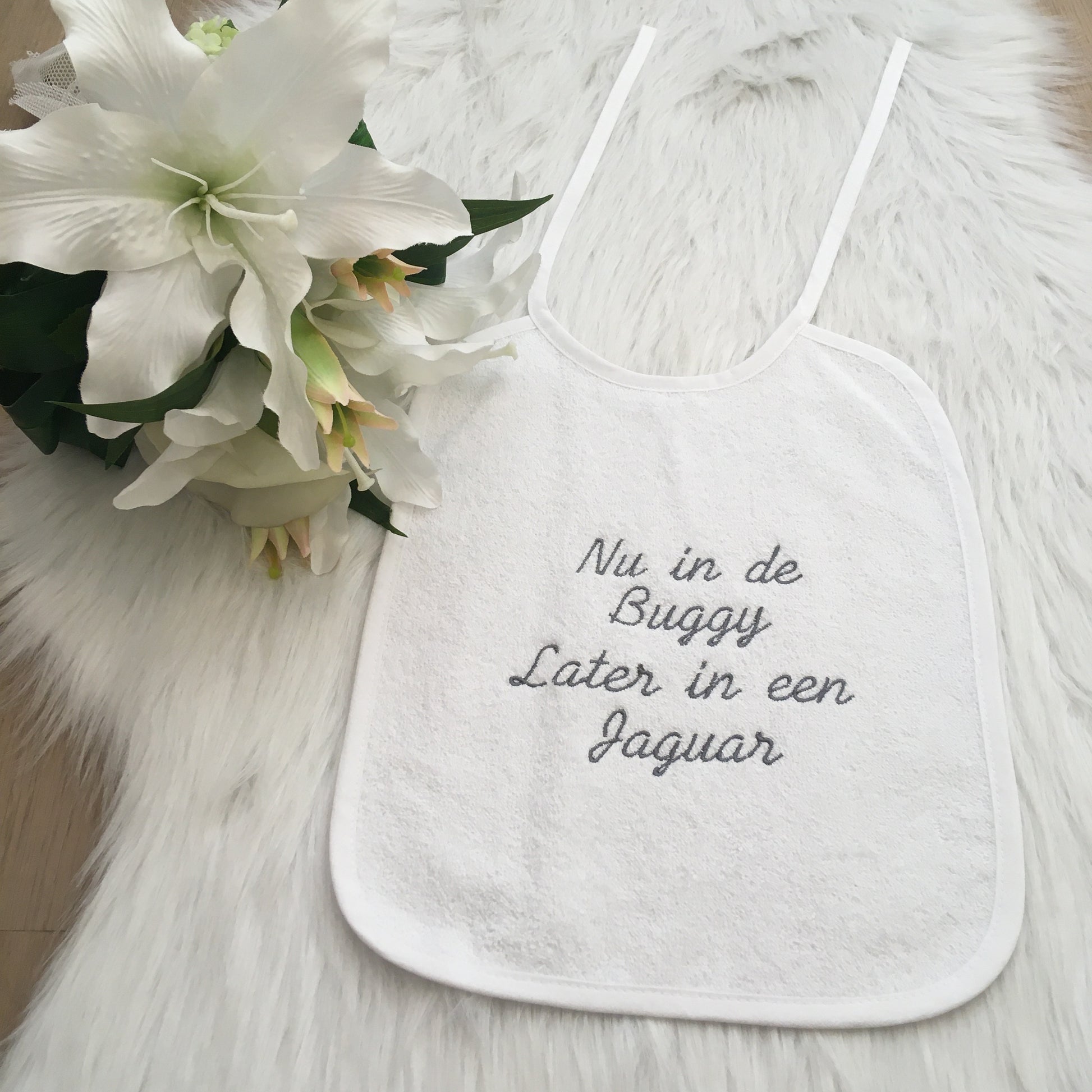 Deze comfortabele slab met leuke tekst zorgt ervoor dat jouw kleine spruit het schoon houd tijdens het eten